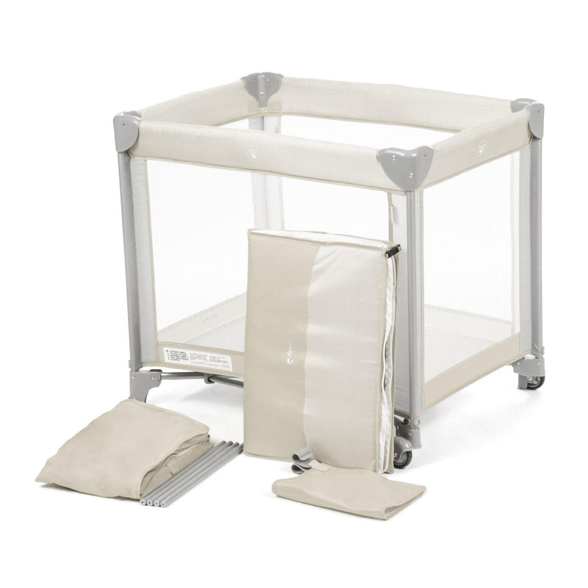 Leve, compacto e confortável para o bebê com rodas para movimentação, laterais com tela arejada, bolsa de transporte com alça e mosquiteiro. Bolso porta-objetos removível e reposicionável.