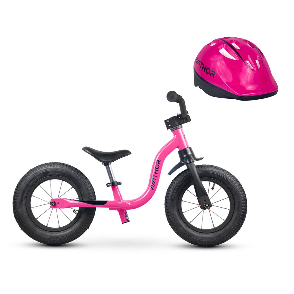 Bicicleta Balance Infantil Raiada e Capacete Rosa - Nathor
