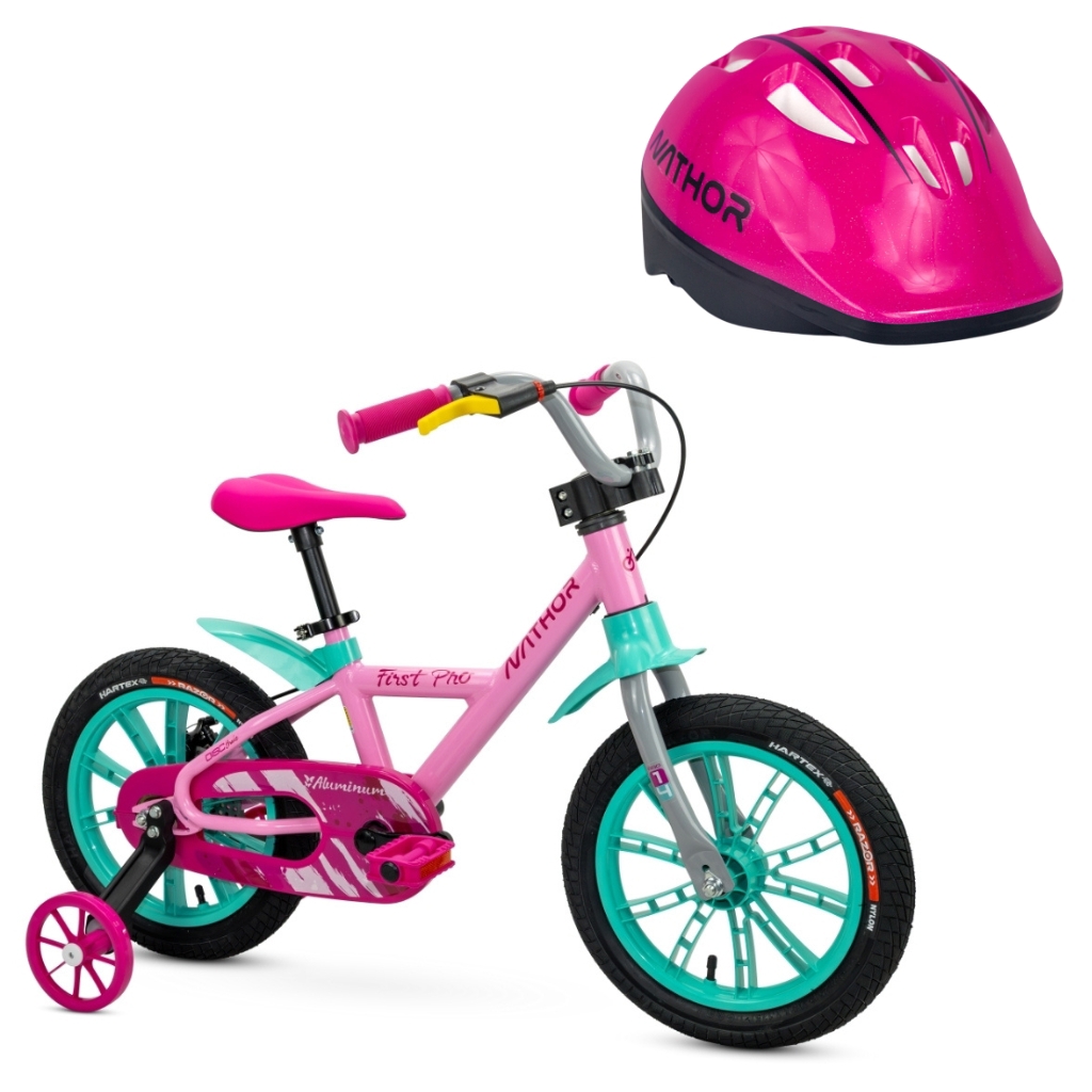 Bicicleta Infantil Aro 14 First Pro Feminina 4 Rosa E Capacete