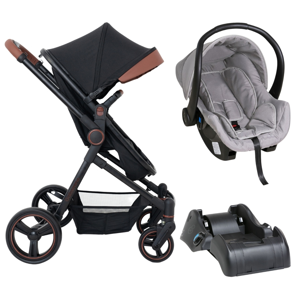 Carrinho De Bebê Galzerano Ivy Preto Com Bebê Conforto E Base