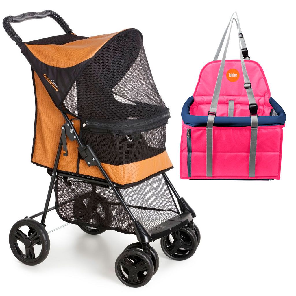 Carrinho Pet Lecco Caramelo e Assento Cadeira Transpet Big Cães 15kg