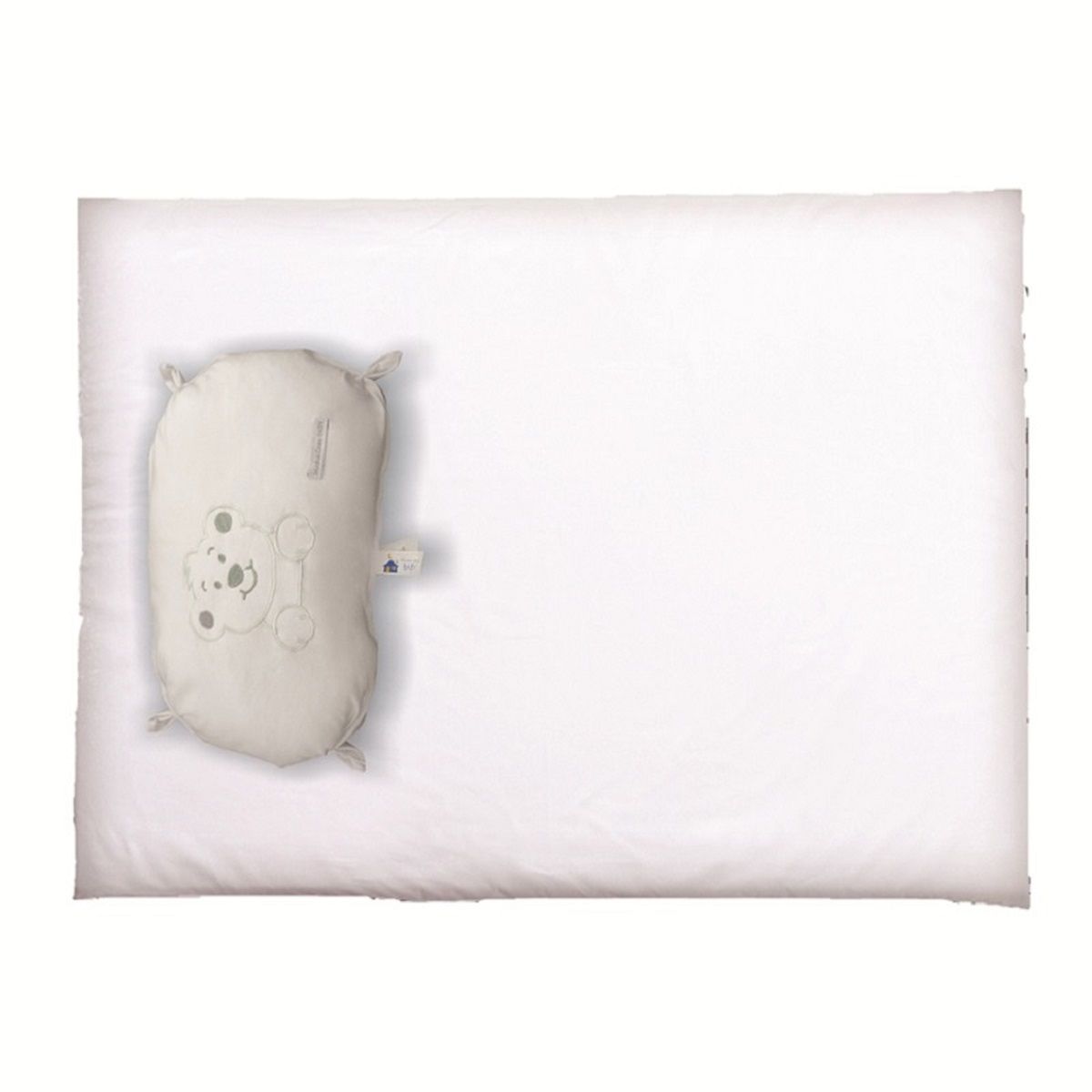 Possui enchimento de espuma poliuretano, e uma capa tecido 100% algodão e acompanha uma naninha para o aconchego da criança.