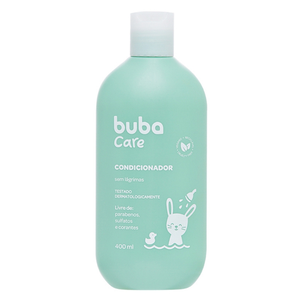 Após lavar os cabelos do pequeno com o Shampoo Buba Care, aplique o condicionador Buba Care delicadamente com a palma das mãos e, em seguida, enxágue bem.