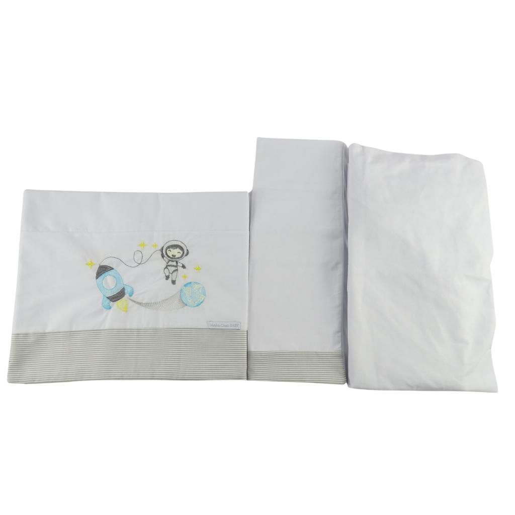 Jogo de Lençol Berço Astronauta Cinza 3 Pçs - Minha Casa Baby