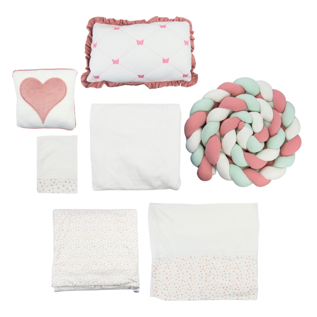 Kit Berço Hug Lovely Day Rosa Antigo 8 Peças
