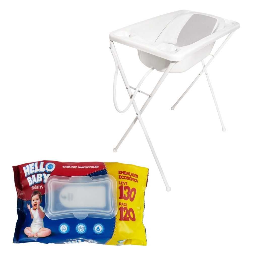 Banheira plástica Galzerano com saboneteira, assento redutor e suporte!