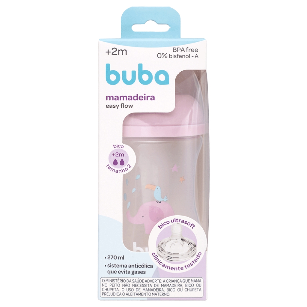 Mamadeira Easy Flow Buba Elefante Rosa 270ML +2M