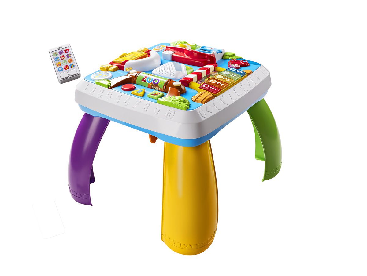 O bebê vai encontrar um novo lugar (e muitas atividades) para explorar em cada canto dessa mesa educativa. O zoológico tem um rolo pra girar e ativar música sobre animais... Ou pode apertar botões para aprender as formas em português e inglês. Vá para a fazenda para abrir e fechar a porta do celeiro e ser recebido por uma amigo diferente.