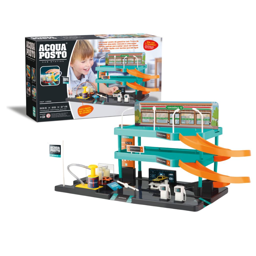 O Acqua Posto da Nig é um brinquedo incrível, com posto de gasolina, rampas de subida e descida, elevador e lava rápido. Ele tem o mais moderno sistema de bombeamento de água à sucção, garantindo o abastecimento da bomba e a lavagem completa dos carrinhos!