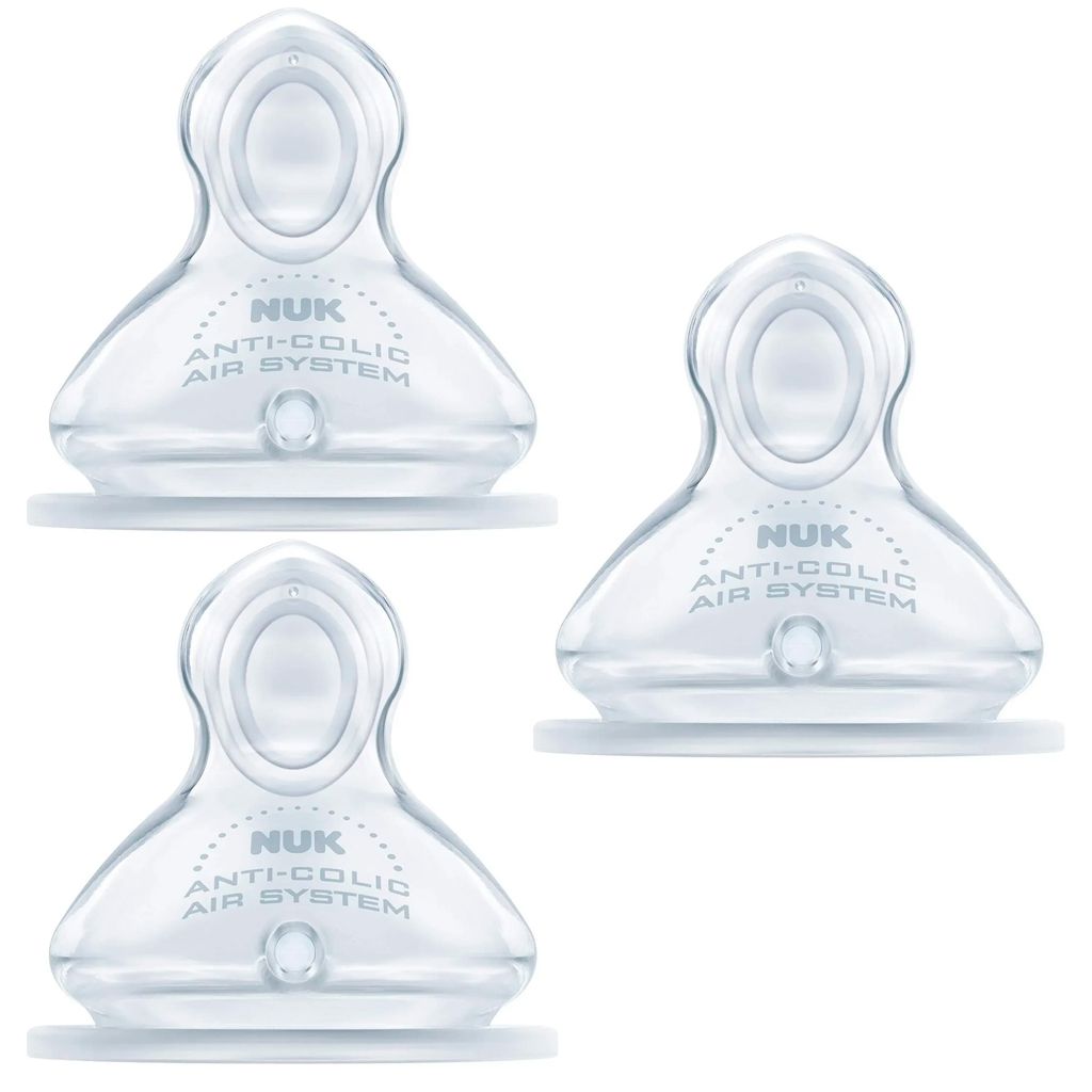 O Bico First Choice Advanced para líquidos de média consistência da NUK foi desenvolvido por especialistas para tornar a alimentação mais tranquila e confortável para o bebê. O formato Oral Fit tem o topo curvado que adapta-se ao palato da criança e a base angular e larga para posicionar a língua durante a sucção, além da superfície Soft Flex que garante flexibilidade e maciez ao bico. Também possui a exclusiva válvula NUK Air System que compõe um sistema de ventilação capaz de reduzir a ingestão de ar do bebê durante a alimentação, evitando cólicas.