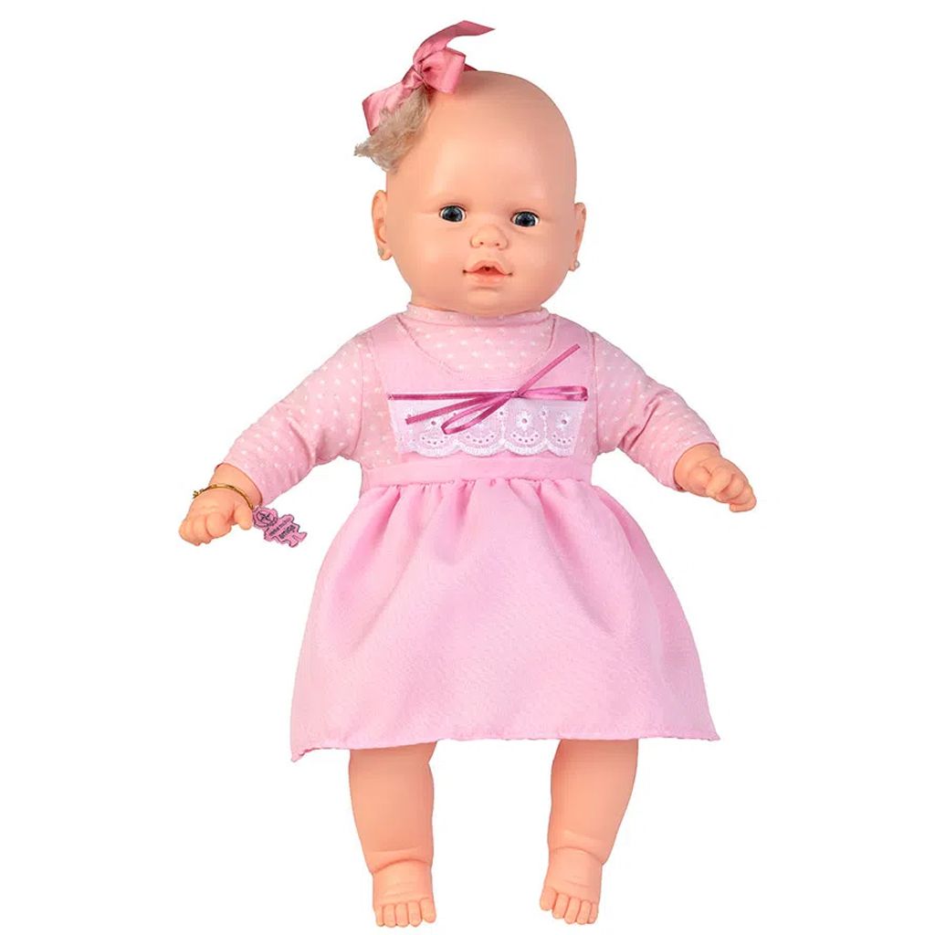 A tradicional marca Bebezinho, da linha Bebezinhos, é referência de qualidade e apresenta diversos detalhes. O primeiro é o seu cheirinho delicioso e gostoso de talco, igual ao de um bebê que acabou de sair do banho. Além disso, suas roupinhas são de alta costura e de estampas exclusivas. Ela possui uma linda pulseirinha de menininha, que é o verdadeiro atestado de mamãe e filhinha. E claro, o produto acompanha uma chupeta para quando o bebê for dormir.