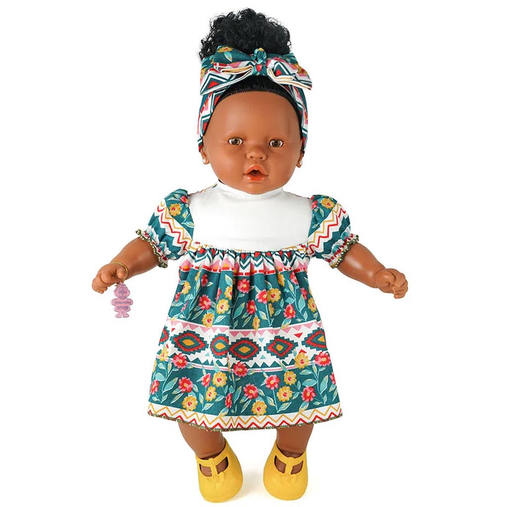 A Linda é uma boneca muito charmosa! Tem cabeça, pernas e braços de vinil e vem com cheirinho de bebê. Além disso, o cabelo dela é enraizado, com uma faixa combinando com a estampa do vestido. Acompanha um sapato amarelo, chupeta branca e a pulseirinha em formato de menininha! Ela é muito especial e a criança vai amar brincar de mamãe e filhinha o dia inteiro!