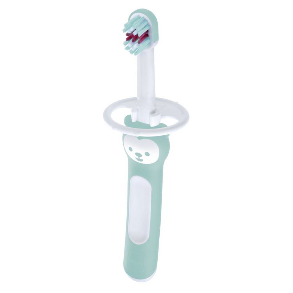 A Escova de Dente Baby's Brush da Mam, apoia a escovação independente do bebê, sendo fácil de segurar devido ao seu cabo ergonômico. Escova com cabeça pequena e arredondada, cerdas extra macias, cabo longo e ergonômico e trava de segurança, ideal para os primeiros cuidados oral dos pequenos!