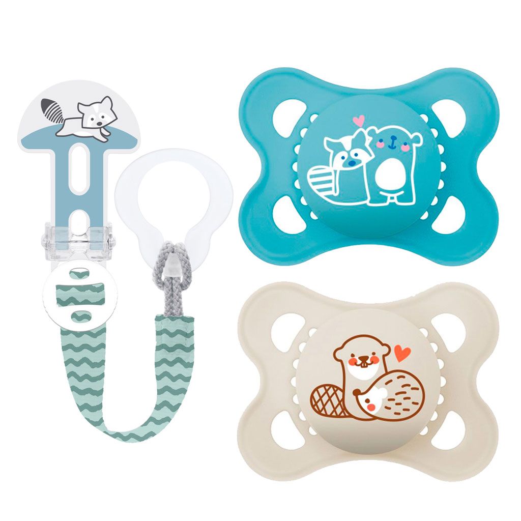 Kit Chupeta Borracha Natural 0-6 m Dupla com Prendedor - MAM