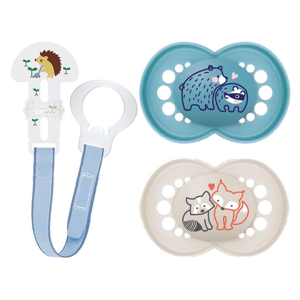 Kit Chupeta Borracha Natural (+6 meses) Dupla com Prendedor - MAM