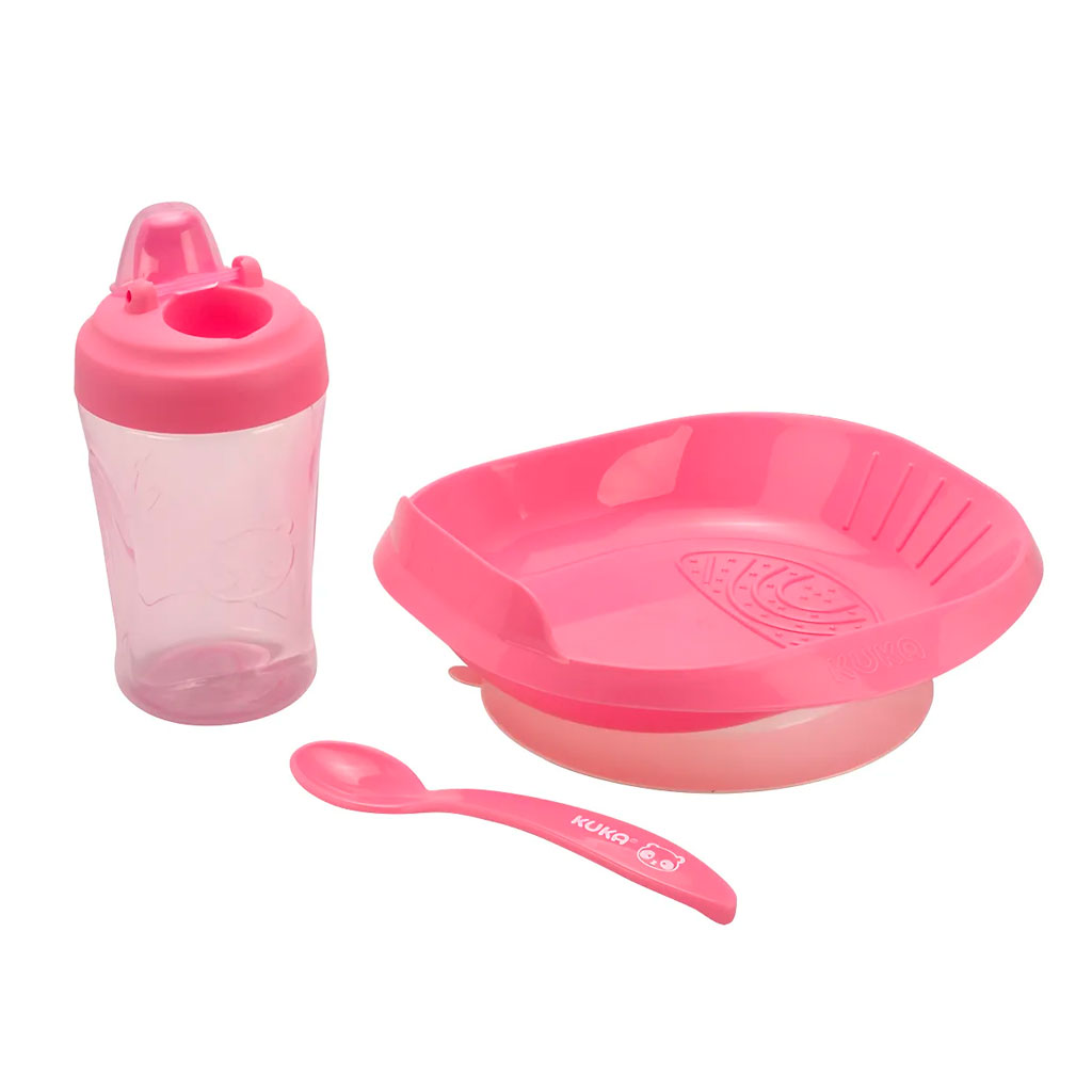 Ideal para as crianças que estão começando a se alimentar sozinhas. O conjunto é composto por um pratinho, colher e copo que auxiliarão e divertirão seu filho na hora das refeições.