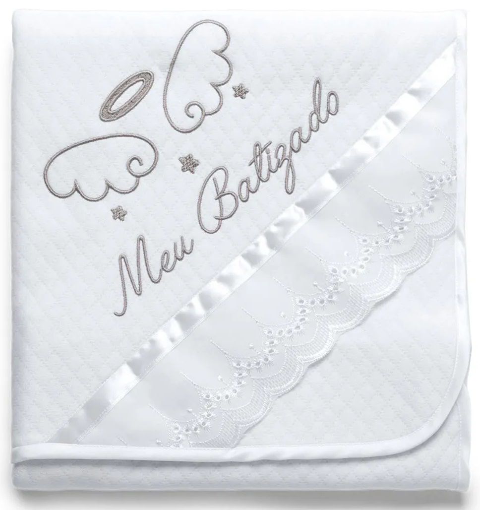 A manta batizado Hug é perfeita para proteger e acompanhar o bebê em um dos dias mais importantes de sua vida! Com ela, o bebê ficará quentinho e confortável.