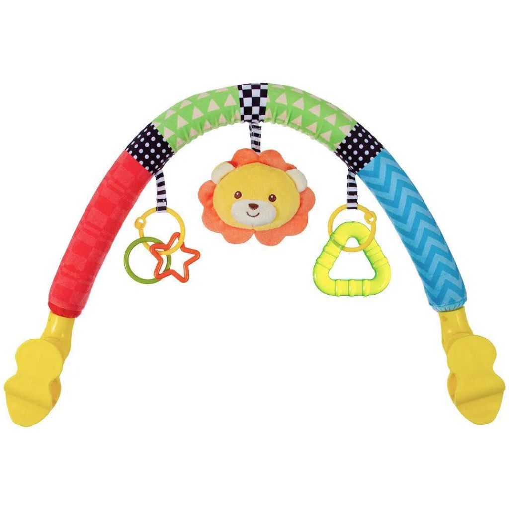 O móbile para carrinho animal fun é macio e com cores vibrantes, ideal para entreter o bebê.