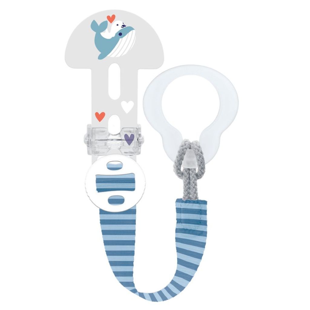 Com o clipe inovador o comprimento pode ser ajustado de acordo com a necessidade com a sua alça flexível é fácil e rápido prender chupetas, mordedores, brinquedos e outros. O anel é fácil de remover permitindo prender chupetas MAM bem como outras chupetas. O novo mecanismo do clipe pode ser aberto automaticamente puxando a peça deslizante para trás tornando fácil de operar com apenas uma mão.