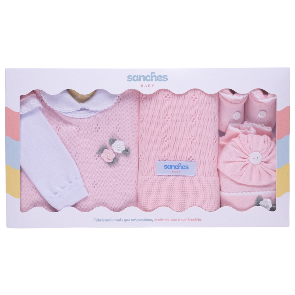 Saída de Maternidade Sanches Baby Feminino Rosa c/ Branco