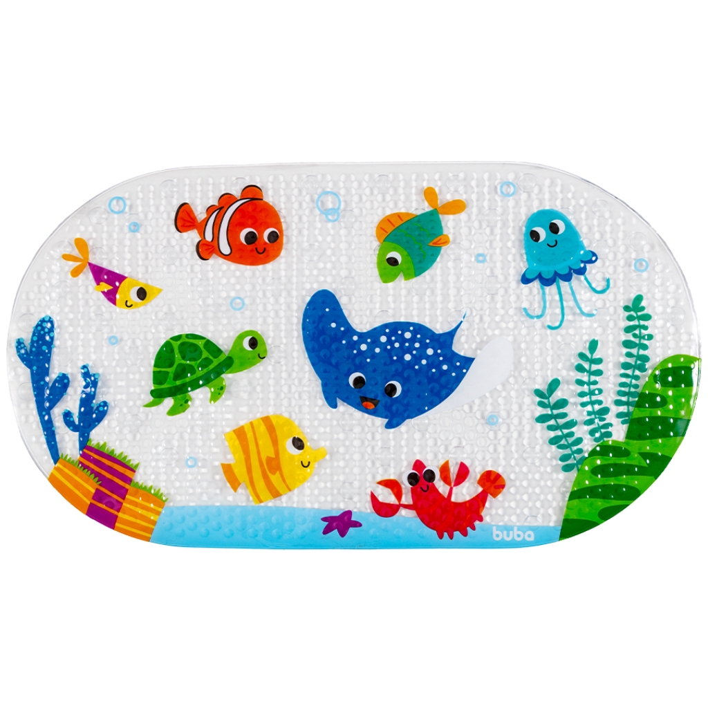 É um acessório colorido e divertido, projetado para garantir mais segurança e conforto durante o banho dos pequenos. Com estampa temática de fundo do mar, o tapete conta com diversos elementos marinhos, como peixinhos, estrelas do mar e algas, tornando o momento do banho mais agradável e lúdico.