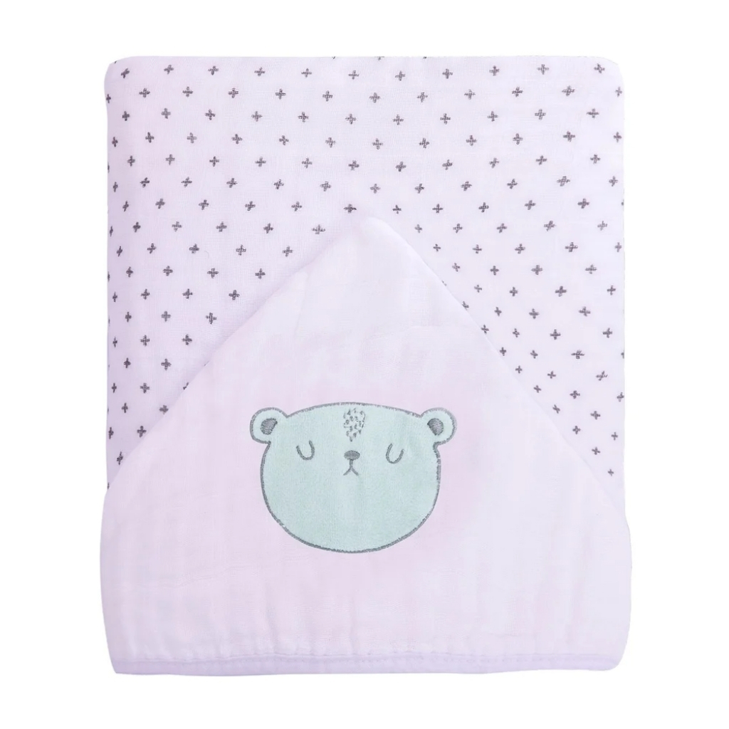 Toalhão de Banho Soft Premium c/ Capuz Bordado Urso - Papi Mami